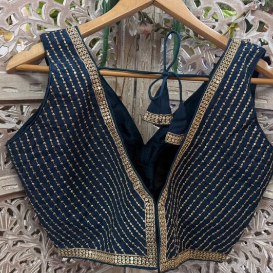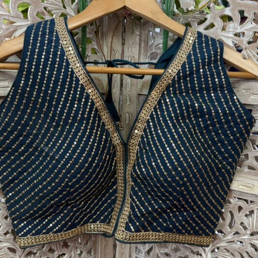 TEAL BLUE READY MADE SEQUIN BLOUSE READY TO DISPATCH HR12